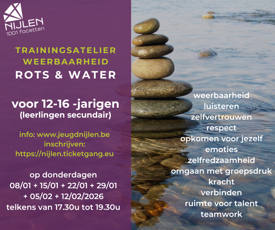 Rots en Water is een ’psycho-fysiek’ weerbaarheidsprogramma waarin jongeren leren om op een goede manier voor zichzelf op te komen. Lokaal bestuur Nijlen organiseert dit voorjaar een nieuwe reeks voor jongeren van 12 tot 16 jaar (leerlingen secundair onderwijs, 1ste t/m 4de middelbaar).